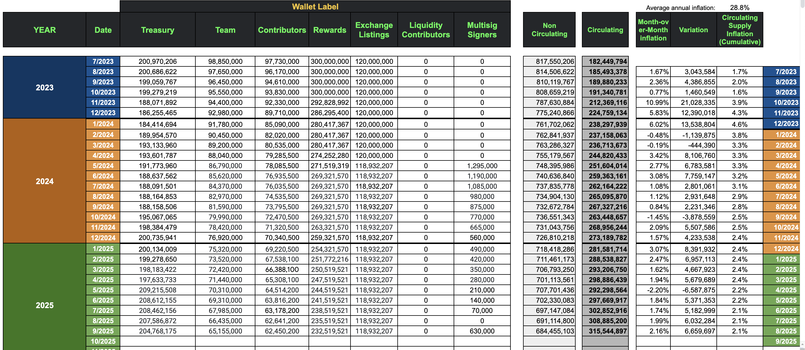 Wallet Label | % | Starting Balance | Remaining Supply | In Circulation |